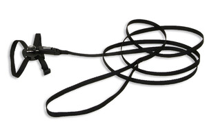 - В комплект входит тонкий нейлоновый поводок с ручкой-петлёй и облегчённым карабином, открывающимся при нажатии на кнопку.