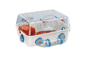 Combi 1 - клетка для хомяков небольшого размера, но в ней есть все необходимое для содержания вашего питомца. Она изготовлена из пластика и оснащена металлической решеткой сверху для циркуляции воздуха; для этой же цели имеются специальные отверстия на боковых стенках. В комплект входят аксессуары, среди которых кормушка, гнездо, колесо, поилка и игровые пластиковые туннели. Благодаря боковым креплениям, поддон можно полностью отсоединять, что облегчает процесс уборки.