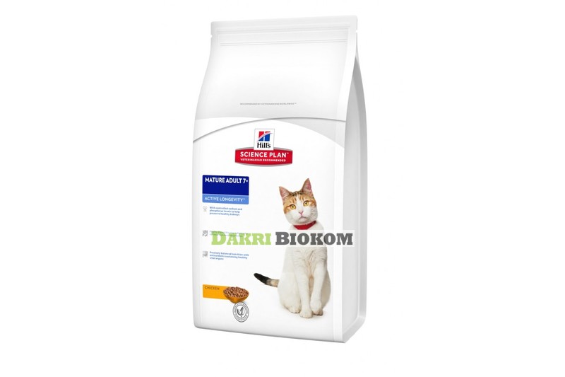 - Hill's™ Science Plan™ Feline Mature Adult 7+ Active Longevity™ Курица помогает защитить почки и функции внутренних органов. Разработан с клинически доказанными антиоксидантами, омега-3 жирными кислотами и сниженным уровнем фосфора.