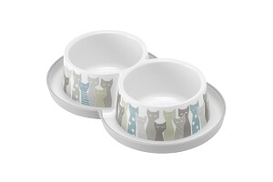Moderna Double Trendy Dinner Maasai МОДЕРНА двойная миска для кошек, защита от муравьев, пластик, дизайн Масаи, 2х350мл, d10см , светло-серый.