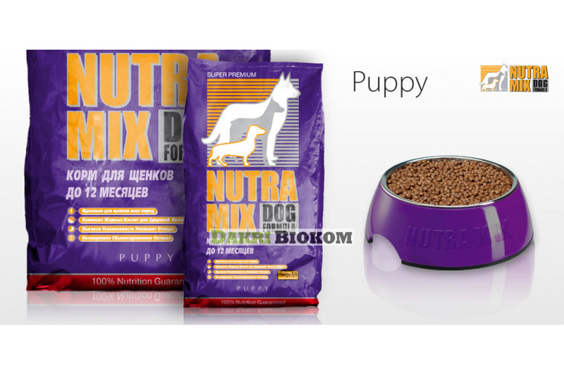 NUTRA MIX PUPPY представляет собой сбалансированное и полноценное питание, которое специально разработано для удовлетворения потребностей быстро растущего организма щенков в первый год жизни. Высокая усвояемость и все необходимые компоненты обеспечат правильное развитие скелета и мускулатуры, формирование крепких зубов. А оптимальный баланс жирных кислот Omega 3, Omega 6 обеспечит рост здоровой кожи и шерсти, иммунную систему и общее состояние здоровья. Результаты тестов на животных согласно процедуры Американской Ассоциации государственного контроля за продуктами питания (AAFCO) показывают что корм NUTRA MIX PUPPY обеспечивает полноценное и сбалансированное питание на всех стадиях жизни животного.