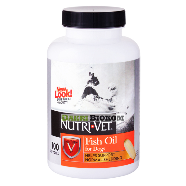 → Nutri-Vet Fish Oil НУТРИ-ВЕТ РЫБИЙ ЖИР добавка для шерсти собак, 100 капсул
