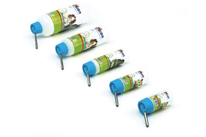Удобная пластиковая поилка для грызунов. Имеются емкости разного объема. Закрепляется на необходимой высоте с помощью легкой и надежной специальной системы, буквально в считанные секунды и без особых усилий. Клапан поилки должен находиться примерно на уровне плеча животного. Поилка представляет собой пластиковый баллон для воды и стальной носик с это идеал поилки для грызунов. Вода выделяется при нажатии на шарик. Грызуны быстро учатся пользоваться такими поилками, проблем с демонстрацией зверьку принципа их работы не возникает. Преимущества этой автопоилки в том, что грызун не может вылить или испортить всю свою питьевую воду. Потому, мыть поилку и менять в ней питьевую воду хозяину нужно намного реже, в зависимости от объёма поилки и суточного потребления воды зверьком.