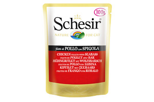 → Schesir Chicken Seabass ШЕЗИР КУРИЦА С ОКУНЕМ влажный корм натуральные консервы для кошек, куриное филе с морским окунем в желе, пауч 100 г , 0.1 кг.