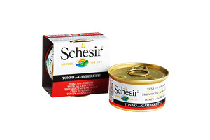 → Schesir Tuna Prawns ШЕЗИР ТУНЕЦ С КРЕВЕТКАМИ натуральные консервы для кошек, влажный корм тунец с креветками в желе, банка 85 г , 0.085 кг.
