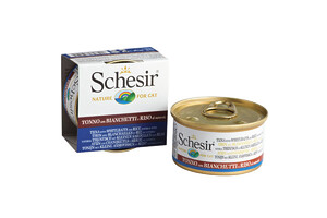 Полноценный влажный корм Schesir с натуральными Тунцом, Мальками Анчоусов и Рисом премиальные консервы для кошек.