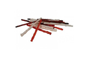 - Данные снеки изготовлены из сыромятой кожи теленка, который скручены и представляют собой витую палочку.