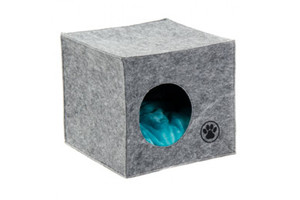 Дом-лежка в форме куба с круглым входом и мягкой подушкой внутри – самый уютный домик для вашего любимца.