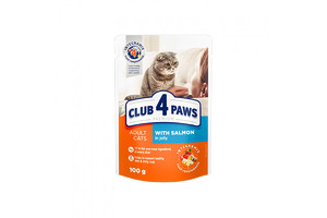 → КЛУБ 4 ЛАПЫ PREMIUM влажный рацион для взрослых кошек«С лососем в желе» 100г