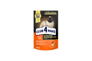 КЛУБ 4 ЛАПЫ PREMIUM для котов «кусочки курицы с телятиной в желе» 80г