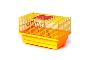 Декоративная клетка небольших размеров, изготовленная из безопасных для грызунов материалов. В комплектацию входит металлическая полочка и барабан для развлечений ее жителей.