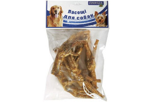 Натуральные сушеные лакомства – полезная добавка к рациону. Благодаря плотной структуре они отлично очищают и укрепляют зубы и десны собак, удовлетворяют инстинкт жевания.