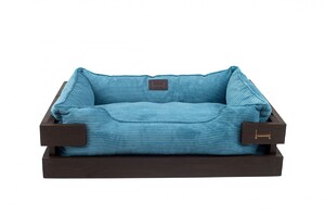 Модель с Dreamer с деревянным каркасом из натурального дерева коричневого цвета + мягкий лежак из вельвета голубого цвета.