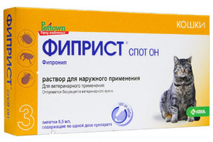Фиприст спот он обладает выраженным инсектицидным и акарицидным действием в отношении всех фаз развития вшей, блох, власоедов и клещей (иксодовые, хейлителлы, отодектосы), паразитирующие на собаках и кошках.