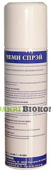 Показання до застосування Чемі спрей: рани (у тому числі хірургічні), виразки, відкриті абсцеси, дерматити, інфекційні ураження копит. Застосовується Чемі спрей для всіх тварин.