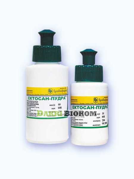 Ектосан-пудратм НЕ токсичний препарат для теплокровних тварин і птахів. Його LD50 для білих щурів при внутрішньошлунковому введенні> 15000 мг / кг. Тому згідно класифікації речовин за токсичністю, препарат належить до VІ класу токсичності (відносно нешкідливих речовин).
