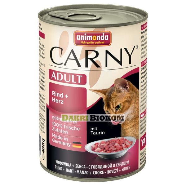 Консервы для кошек с говядиной, треской и петрушкой, Полноценный корм для взрослых кошек Animonda Carny (Анимонда Карни) Состав: говядина 30% (легкое, мясо, сердце, почки, вымя), сердце 29% (печень, желудок, шейка, мясо), дичь 6% (мясо), карбонат кальци