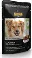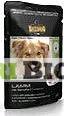 ягненок( 63%); бульон из мяса ягненка (28%); картофельный крахмал(4%); брусника(4%); масло расторопши ( 0,5%); карбонад кальция(0,5%)