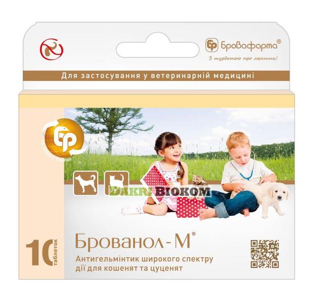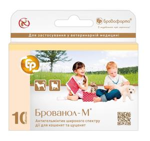 Для цуценят і кошенят - одна таблетка Брованола ®-М на 4 кг або чверть таблетки на 1 кг маси тіла. Вказану дозу слід розділити на дві рівні частини і згодувати з добовим інтервалом.