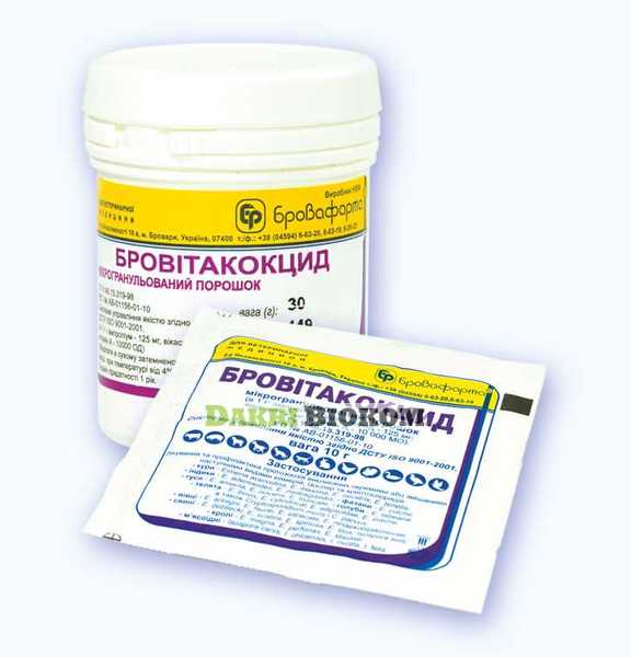 лікування: незалежно від виду та віку птиці - 2 г на 1 кг корму або 1 л води протягом 5-10 діб.