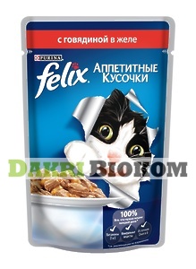 У него такой аппетитный вид и аромат, словно его приготовили вы сами. Felix "аппетитные кусочки" создан по специально разработанной рецептуре: это нежнейшие кусочки с мясом или рыбой, покрытые сочным желе.