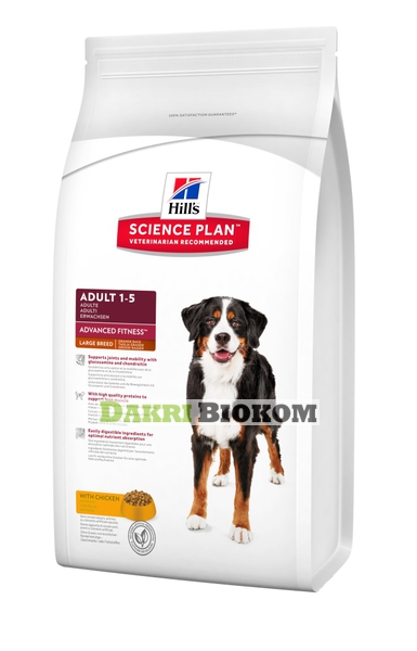 Hill's™ Science Plan™ Canine Adult Advanced Fitness™ Large Breed с Курицей разработан для оптимальной поддержки суставов и мышц, для собак крупных и гигантских пород. С клинически доказанными антиоксидантами, глюкозамином и хондроитином из натуральных источников.