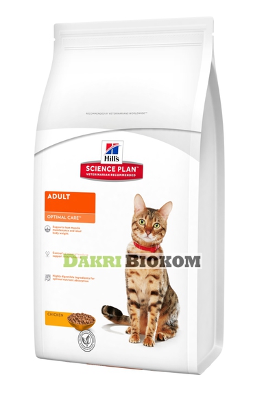 Hill's™ Science Plan™ Feline Adult Optimal Care™ Курица разработан для поддержания оптимальной физической формы, с клинически доказанными антиоксидантами, отборными протеинами и обогащен Омега-3 жирными кислотами.