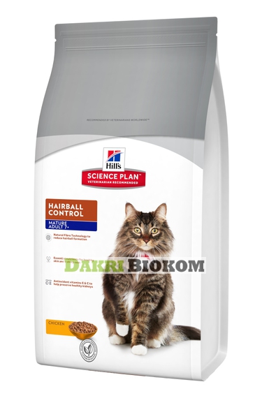 Hill's™ Science Plan™ Feline Mature Adult 7+ Hairball Control Chicken помогает предотвратить образование волосяных комочков.