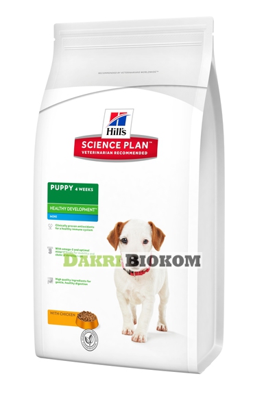 Hill's™ Science Plan™ Puppy Healthy Development™ Mini Курица разработан для поддержания иммунитета и подвижности, с клинически доказанными антиоксидантамии ДГК из рыбьего жира.