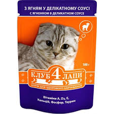 Клуб 4 лапы консерва для кошек ягненок в деликатном соусе
