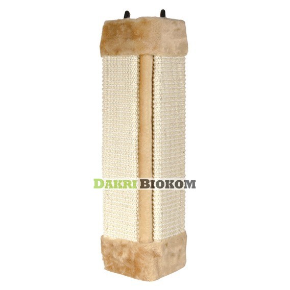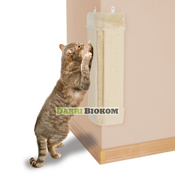 Когтеточка для кошек, угловая настенная с мехом обита плюшем с сизалевыми вставками размером 11 × 41 см. Общий размер: 23× 49 см. Цвета когтеточки бывают бежевый и коричневый.