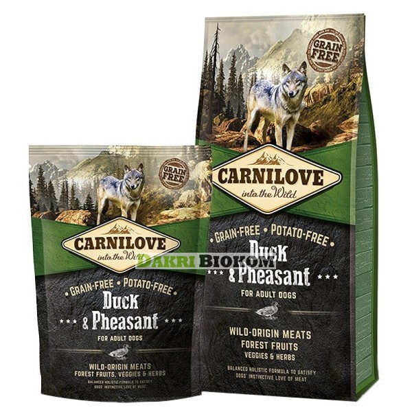 Carnilove Duck & Pheasant For Adult Dogs — полнорационный сбалансированный беззерновой сухой корм для взрослых и стареющих собак всех пород. В составе продукта находится мясо утки — источник белков, богатый полиненасыщенными жирными кислотами, которые снижают уровень холестерина в крови и мясо фазана, которое вместе с уткой создает диетически сбалансированную и питательную основу корма, содержащую все необходимые аминокислоты.