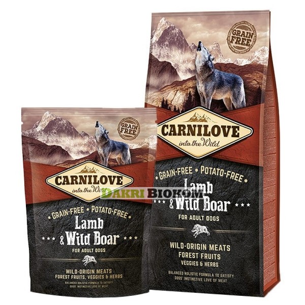 Carnilove Lamb & Wild Boar For Adult Dogs — полнорационный сбалансированный беззерновой сухой корм для взрослых собак всех пород. В составе продукта находится мясо ягненка и дикого кабана, которые образуют сочетание легкоусвояемых белков, богатых натуральными питательными веществами. Ягненок является источником микроэлементов, в частности: селена, железа, цинка, а также витаминов группы В и полиненасыщенных жиров. Мясо кабана очень богато белками, а также имеет низкое содержание жира, что помогает поддерживать отличное состояние здоровья и не повышает уровень холестерина в крови.