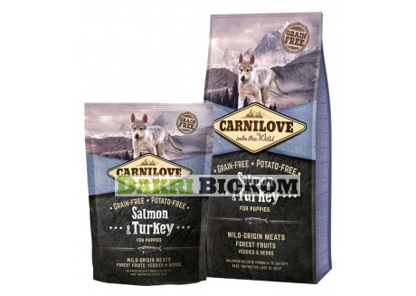 Carnilove Salmon & Turkey Puppy — полнорационный беззерновой сухой корм с лососем и индейкой удовлетворит все потребности растущего организма щенка. Подойдет собакам всех пород от 1 до 12 месяцев.