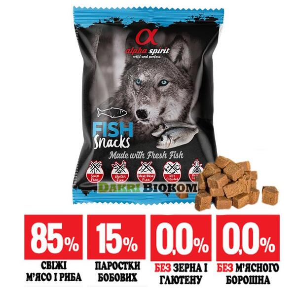 → Напіввологі ласощі для собак ALPHA SPIRIT снек з рибою 50g