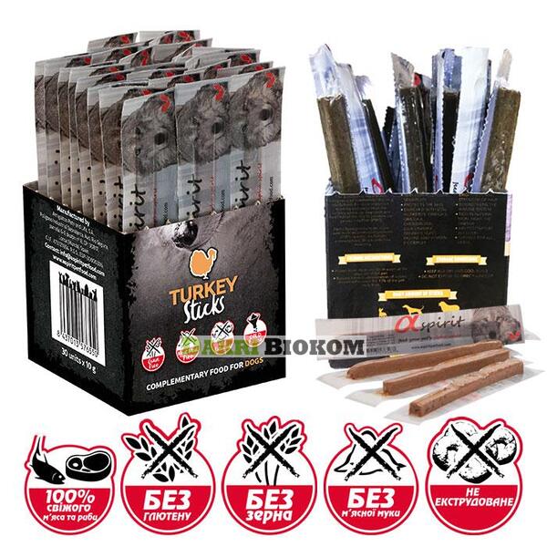 → Напіввологі ласощі для собак ALPHA SPIRIT стік з індичкою (х30 шт.) 300g