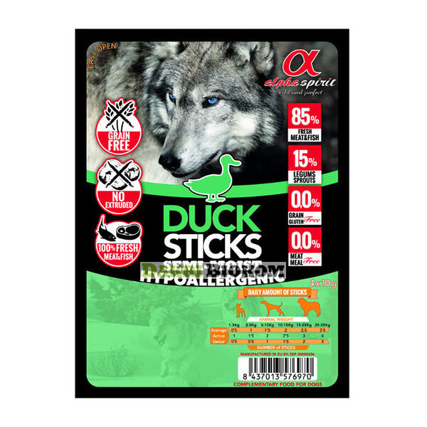 Напіввологі ласощі для собак ALPHA SPIRIT стік з качкою (x4шт) 40g