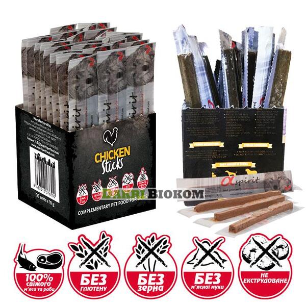 → Напіввологі ласощі для собак ALPHA SPIRIT стік з куркою (х30 шт.) 300g