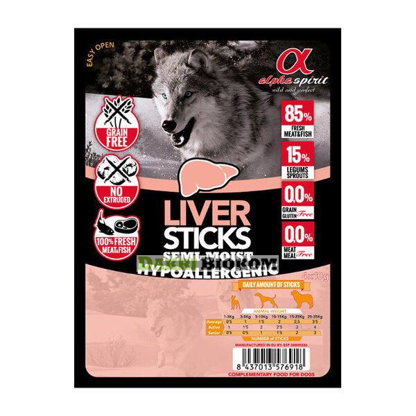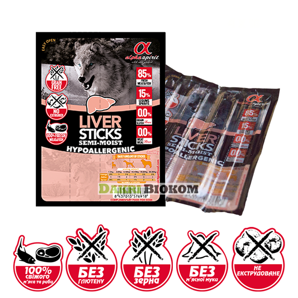 Напіввологі ласощі для собак ALPHA SPIRIT стік з печінкою (x4 шт.) 40g