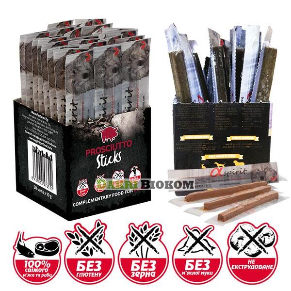 → Напіввологі ласощі для собак ALPHA SPIRIT стік з прошуто (х30 шт.) 300g