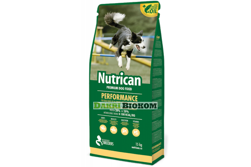 Nutrican Performance - полнорационный, сбалансированный корм премиум класса для взрослых активных собак всех пород. Корм полностью обеспечивает питательные потребности Вашего питомца. Содержит исключительно высокоусвояемые протеины: высушенное мясо курицы, внутренние органы, муку из мяса курицы и куриную печень, обеспечивает питательность и прекрасный вкус корма. В составе 28% протеина и 20% жира.