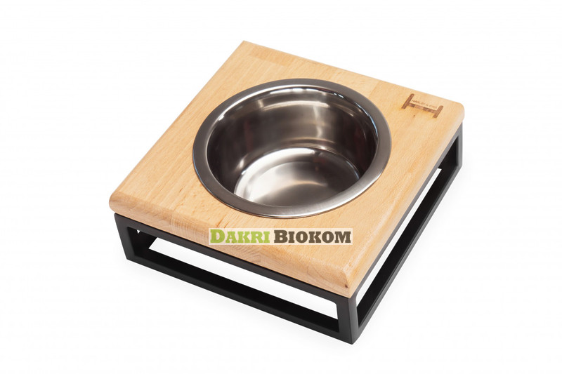 Одна миска на подставке Natural wood + Black, S