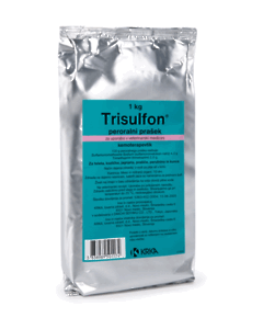 Трисульфон (Trisulfon) – комбінований хіміотерапевтичний препарат з широким антимікробним спектром дії, який містить в якості діючих речовин 40 мг/г сульфамонометоксину натрію та 20 мг/г триметоприму. Зовнішній вид – білий сипучий порошок без запаху, добре розчинний у воді. Випускають препарат в пластикових контейнерах по 100 г, та в герметично закритих пакетах з ламінованої фольги по 20 г, 100 г і 1 кг. Зберігають в сухому, темному, недоступному для дітей місці при температурі від 0° до +30°С. Термін придатності – 3 роки.