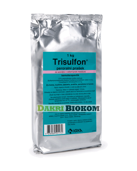 Дозування Трисульфон порошок призначають перорально з питною водою у дозі: телята, лошата, козенята, ягнята, свині – 10 г препарату на 40 кг маси тіла щодоби протягом 5 діб. Препарат додають до питної води (10 г на 5 л води) або до корму (60 г на 10 кг корму) .Профілактична доза становить половину терапевтичної, курс терапії 5-7 діб; домашня птиця (курчата на відгодівлі, індики на відгодівлі, куринесучки та батьківські лінії) – для лікування кокцидіозу доза становить 800 г препарату на 100 л питної води щодоби. Тривалість лікування 3-5 діб. Для лікування інших хвороб доза становить 200 г порошку на 100 л питної води (або 4 кг на 1 т корму) протягом 5 діб. Профілактична доза становить половину терапевтичної, курс терапії 5-7 діб; кролі – 8 г порошку на 1 л питної води щодоби протягом 5 діб. Профілактична доза становить половину терапевтичної, курс терапії 5-7 діб.