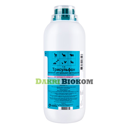 Дозування Профілактична та лікувальна добова доза: телята, ягнята, лошата, кози, свині – від 15 до 30 мг активної речовини на 1 кг маси тіла, що відповідає 1-2 мл суспензії Трисульфону на 32 кг маси тіла (або 50 мл на 100 л питної води). Препарат необхідно додавати у питну воду протягом 5 днів. Під час лікування тварини повинні отримувати лише питну воду, в якій міститься препарат. Якщо це неможливо, добову дозу рекомендуєтьсярез 12 годин; домашня птиця (курчата на відгодівлі, індики на відгодівлі, куринесучки та батьківські лінії) – доза препарату при лікуванні кокцидіозу становить 100 мл суспензії Трисульфону на 100 л питної води. Тривалість лікування 3-5 днів. Добова доза для лікування інших захворювань у домашньої птиці – 1 мл суспензії Трисульфону на 32 кг маси тіла; кролі – 100 мл суспензії Трисульфону на 100 л питної води. Курс терапії – 5 днів. Препарат додають у питну воду.