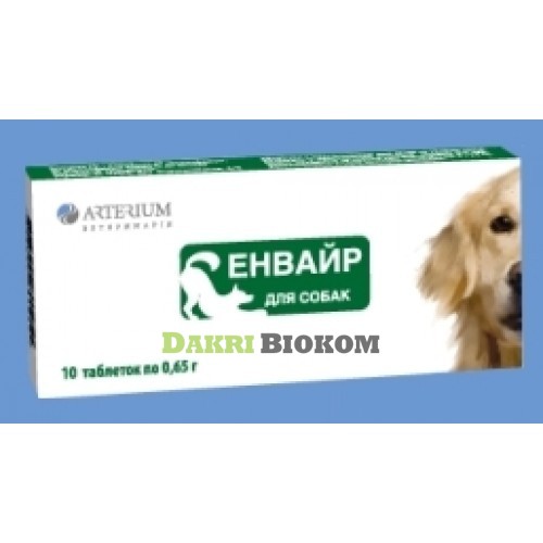 Энвайр - комплексный противоглистный препарат для щенков и взрослых собак. Эффективен как против круглых гельминтов так и против ленточных. 1 таблетка на 10 кг веса