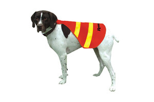 Жилет для охотничьих собак предназначен для защиты тела собаки от травм, холода во время охоты и дрессировки. Цвет жилета - флуоресцентный ярко-оранжевый с желтыми полосками - позволяет видеть собаку в любое время суток на большем расстоянии. Жилет сшит из водоотталкивающего материала, легко одевается и снимается.