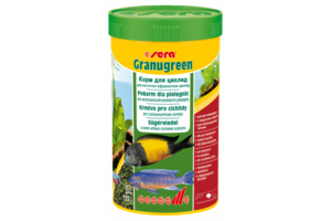 sera гранугрин – основной корм, состоящий из гранул, произведенных путем бережной обработки сырья; предназначен для более мелких цихлид (включая множество Восточно-Африканских видов), которые преимущественно питаются растениями и перифитоном.