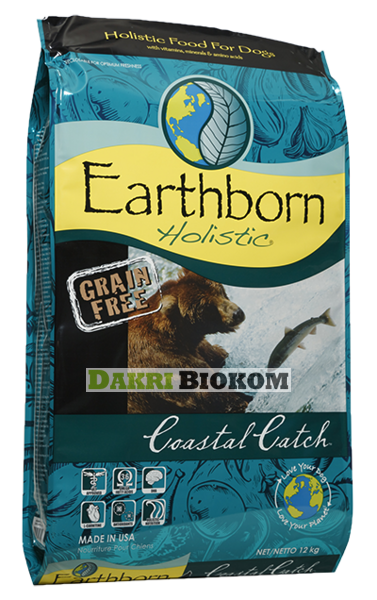 EARTHBORN HOLISTIC Coastal Catch - це найсучасніше альтернативне беззернове харчування холістик класу на основі м'яса білої риби для собак на усіх стадіях життя. До складу входять корисні та поживні інгредієнти: біла риба (30%), фрукти та овочі (9%).