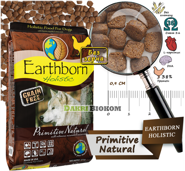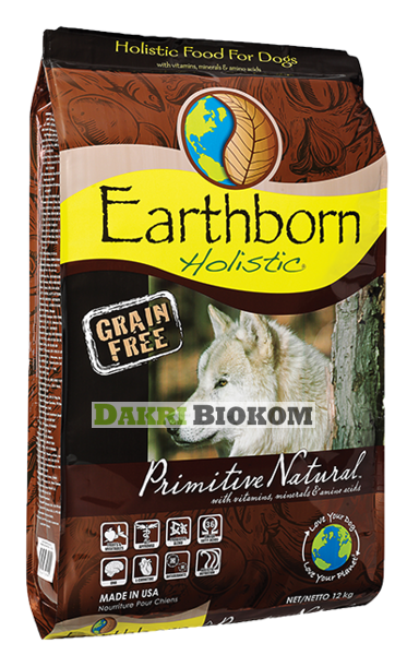 EARTHBORN HOLISTIC Primitive Natural - це найсучасніше альтернативне беззернове харчування холістик класу на основі м'яса курки, для собак на усіх стадіях життя.